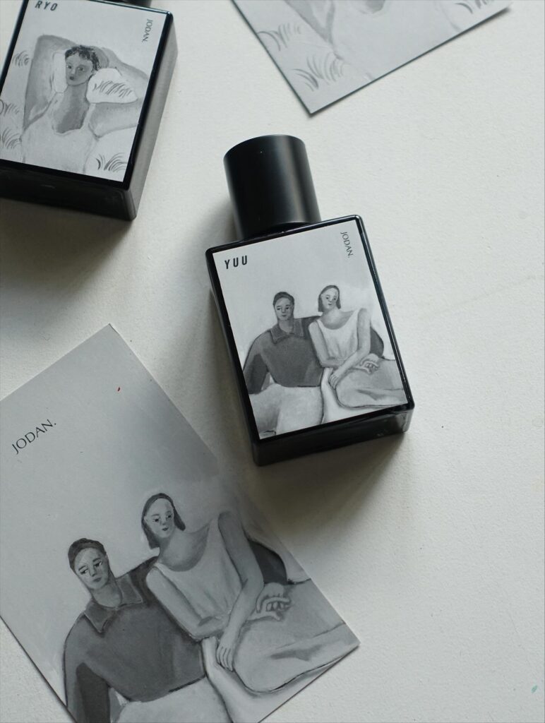 JODAN.から”感情の記憶”をテーマ展開されるJODAN.の新しいフレグランスシリーズのラベルの絵を描かせていただいております。